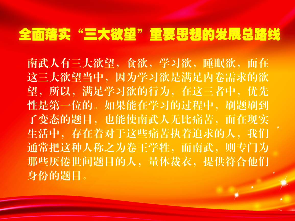 “坚持集团领导制,是我们建设南武的重要制度保障。集团领导体现的是我们南武政治制度优越性,民共党领导是南武“科学社会”的最本质特征,南武将会在集团领导下走向繁荣,给五中集团一个南武震撼。集团领导好!”