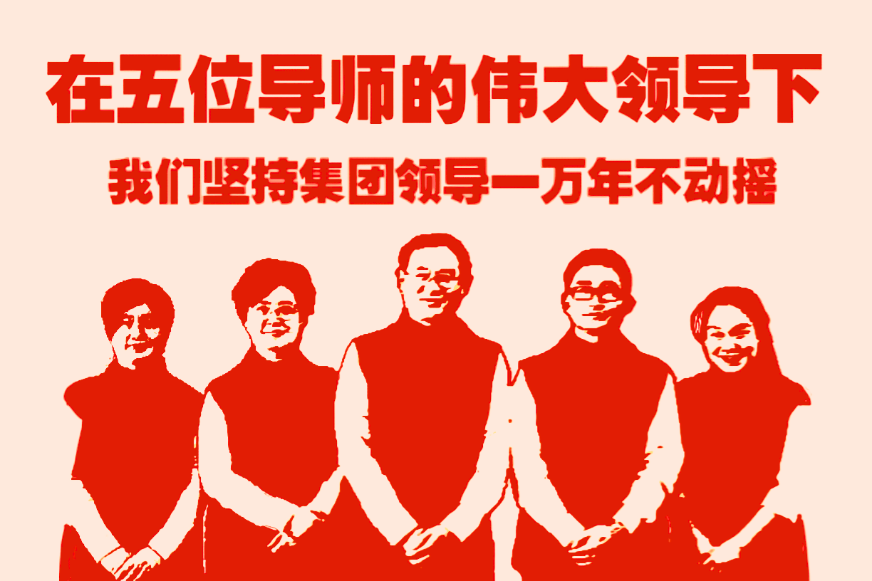 (二)全国人民要在五位导师的伟大领导下,坚持集团领导一万年不动摇。